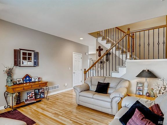 Look no further! This home has been meticulously maintained! Beautifully renovated two story, 3 bedroom, 2.5 bath home in the Southridge area of Highlands Ranch. The exterior boasts a welcoming front porch, over-extended deck, newly stained deck, large backyard with fire-pit area and a quiet street location. The main floor has beautiful hardwood floors, fully remodeled kitchen with white cabinets, granite countertops, roll-outs in the lower cabinets, large island, pantry, stainless appliances, and views of the backyard from your kitchen sink. Enjoy the open floor plan with large family room, gas fireplace, sun-filled rooms, and soaring ceilings. Whether you are entertaining several guests or private party of two, you will enjoy the layout and flow from kitchen & family room opening up the backyard and additional entertaining space! The upper level has two guest bedrooms with full guest bath plus the master suite! The massive master suite includes a bonus area that could be used as nursery, den, or relaxing, sitting room. All bathrooms have been updated with granite. This home will not disappoint with its open basement and its pristine condition! Arrowwood Elementary is a short walk on the path. LOW HOAs with many amenities. There are several Rec Centers and trails in the Highlands Ranch area for residents to enjoy. Seller is leaving the firepit area chairs and bench. This truly is a move in ready home!