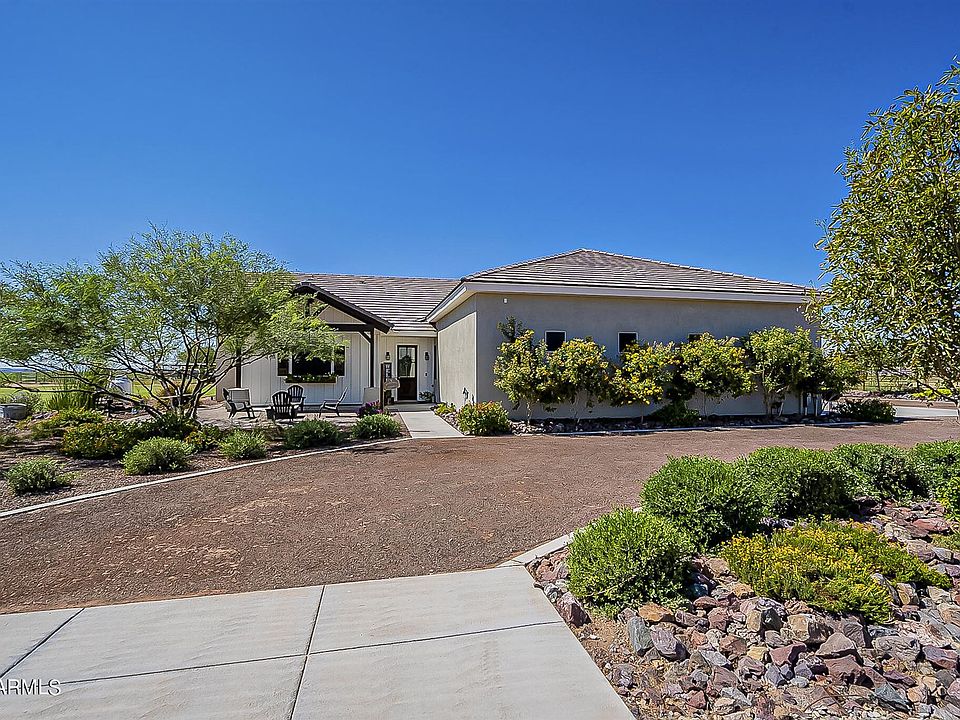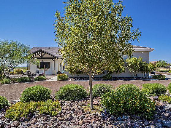 This 4 Bedroom, 3.5 Bath, 5 Car Garage Farmhouse sits on over 1 acre of irrigated land. Upon entering you will see the high end finishes such as wood plank floors, 8'' baseboards, custom paint, & upgraded 8' doors. The chef's kitchen boasts white shaker cabinets, quartz counters, subway tile backsplash, double ovens, gas cooktop w/pot filler, & a kitchen island w/built-in microwave & a built-in sonic crushed ice maker. The master bedroom has a large walk-in closet and bathroom with a soaking tub & walk-in shower w/multiple shower heads. Other features include an open kitchen/living area, family room, large secondary bedrooms & a perfect sized laundry room with 2nd fridge. The tandem garage with its 10' door height allows for parking lifted vehicles & boats. Bring all your toys & animals