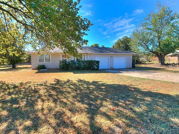 A rare find in Carl Albert schools! Clean and ready to move in home on one acre (mol). Two nice sized living areas to spread out in. Kitchen/dining area are spacious as well. Kitchen hosts plenty of prep space and a large pantry. Fresh interior/exterior paint. New roof. New garage doors. Out building with over head garage door. Plus a couple other good storage sheds. Storm shelter.