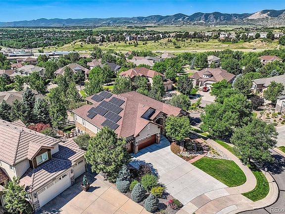 RARELY available luxury home in the Overlook at Bear Creek, a true BEAUTY in the pearl of Lakewood! This is one of THE BEST locations in the community, a neighborhood central to so much; the mountains, the city, rec center, parks, restaurants & venues galore! The METICULOUS ranch-style with spacious walk-out lower level sits at a HIGH POINT OF THE COMMUNITY with year-round panoramic BIRD’S-EYE VIEWS of the many moods of the SKY & MOUNTAINS FROM MANY OF THE ROOMS, SPACIOUS BALCONY, AND PATIO! The main level has beautifully defined living spaces, including the elegant high-ceiling entry seeing-through to balcony which leads to warm living room with oversized fireplace, to the completely remodeled and opened-up kitchen and dining room! THE KITCHEN REMODEL HAS CREATED THE SPACIOUS HEART OF THE HOME, opens to balcony, eating nook, island bar and large dining room with bayed windows and lovely shelving, adjacent to a walk-through scullery. Kitchen appointments are practical and ever-so-tasteful! Primary retreat is tucked into the corner with balcony access and views, secondary main level BR is well-situated at front corner of home with its own 3/4 bath and privacy! Main level office is handy and sunny. Spacious walk-out lower level boasts large family room open to lovely covered patio, generous recreation/workout/playroom, 3 spacious bedrooms, wet bar with sink & frig, and huge well-lit office (3 windows!)! There are so many features and upgrades to discover; UNDER-CONCRETE HEATED DRIVEWAY, EXTENSIVE PROFESSIONAL LANDSCAPING & LIGHTING, FULLY OWNED SOLAR PANELS (electric bill usually zero), and COMPLETE HOME SECURITY SYSTEM, to name just a few!