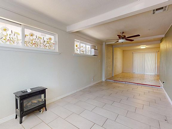 Welcome to this beautifully updated 4-bedroom, 2-bathroom home that perfectly blends style and functionality. Step inside to find upgraded tile flooring throughout, creating a clean and cohesive look. The thoughtfully designed kitchen boasts granite countertops, a stylish backsplash, and stainless steel appliances. The spacious primary suite features a striking barn door that opens into a fully renovated bathroom, complete with a large walk-in shower. Down the hall, you'll find three additional bedrooms and another beautifully updated full bathroom, offering comfort and space for family or guests. Enjoy the outdoors in your private backyard oasis, enhanced with low-maintenance upgraded turf and a convenient storage unit. Energy-efficient solar panels help keep electric bills low year-round. Conveniently located to Fort Bliss, Loop 375, shopping centers, and schools, this home is the perfect blend of comfort and convenience. Don't miss your chance, schedule a tour today and make this beautiful home yours!