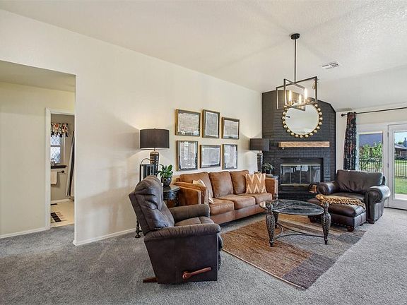 This charming home on a cul-de-sac within Beacon Hill Addition offers exceptional curb appeal both front and back, highlighted by a serene view of Eagle Lake. Step through the stylish modern front door, framed by surrounding windows, and into a welcoming interior with a partial open-concept layout. The living room features striking black and gold updated lighting and a painted black brick fireplace with a warm wood mantle—perfect for cozy evenings. The dining area boasts a bay window that frames picturesque lake views, creating the perfect backdrop for every meal. The kitchen includes a breakfast bar that opens to the main living space, painted white cabinetry with updated hardware, and ample storage. The primary suite is a relaxing retreat with double vanities, a seated vanity space, a walk-in closet, and featuring a whirlpool tub and separate shower. The secondary bedrooms and hall bath are privately located on the opposite side of the home. Step outside to enjoy the covered back patio, supported by wood beams, where you can take in tranquil views of the lake. The majority of the backyard is enclosed with a black wrought iron fence, offering unobstructed scenery while maintaining a sense of openness. Home will also be getting a new black shingled roof, gutters and black garage door installed. **MULTIPLE OFFERS RECEIVED, HIGHEST & BEST DUE 4/19/25 AT 5PM**