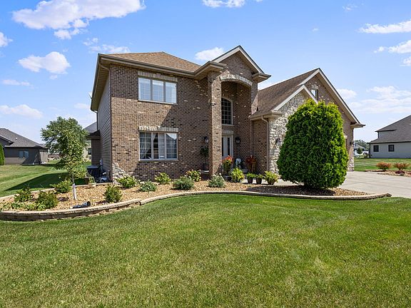 This stunning home with 4 large bedrooms and 4 bathrooms is the epitome of luxury living. Step into a beautifully appointed kitchen featuring granite countertops, perfect for both everyday living and entertaining. The spacious main level offers a versatile flex space with elegant French doors, perfect for a home office or study. Enjoy the grandeur of tall ceilings in the living room, complete with a sophisticated dry bar - perfect for entertaining. The fully finished basement adds expansive living space, perfect for a home theater, gym, or additional recreation area. Outdoors, the meticulously landscaped yard is maintained effortlessly with in-ground sprinklers, offering a serene retreat. The 3-car tandem garage, featuring epoxied floors, provides ample space for vehicles and storage. This home is a true masterpiece, combining luxury and timeless design. Walking distance to the South Shore Dyer train station expected to be complete in May 2025.