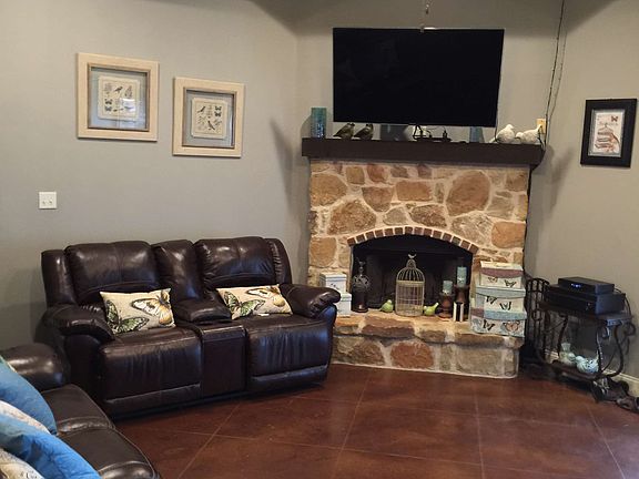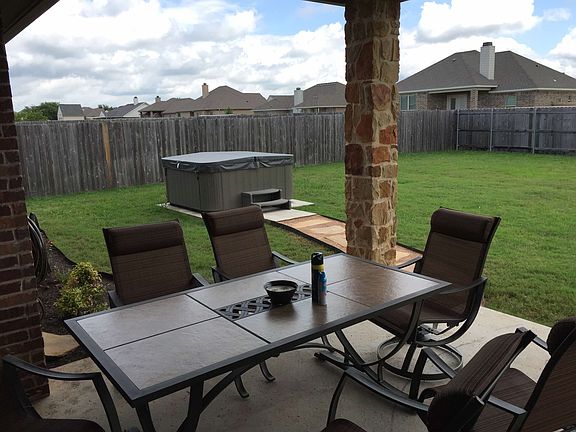 This China Spring home has so much presence sitting high on it's lot. Beautiful stained and scored concrete floors throughout. An office nook just off the entryway would be great for homework! The living room with Tray ceilings and fireplace is open to the kitchen and dining area complete with stainless appliances, double oven, granite counter tops, a large pantry and beautiful seeded glass cabinetry. The backyard is large and has an impressive patio with TV hook ups in 2 locations perfect for entertaining! New saltwater pool added in 2018 is nothing short of amazing!