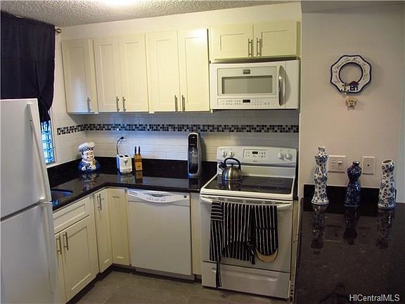 Remodeled w/granite countertops, new kitchen cabinets, dishwasher, window in kitchen, clean, spacious living room/dining room layout, convenient location - much coveted Moanalua School district. Great air floor in this unit, newer laminate & tile flooring, half bath in master, full in hall, washer/dryer in the unit, basketball court, BBQ area, pool, nice size pool deck, mature plumeria trees, green grassy grounds, secure building, resident manager, one reserved parking, street parking close by. Unit does "not" come with furniture. Available November 1st - call Belinda B. 808-741-5656
