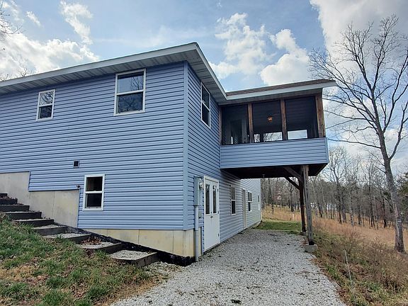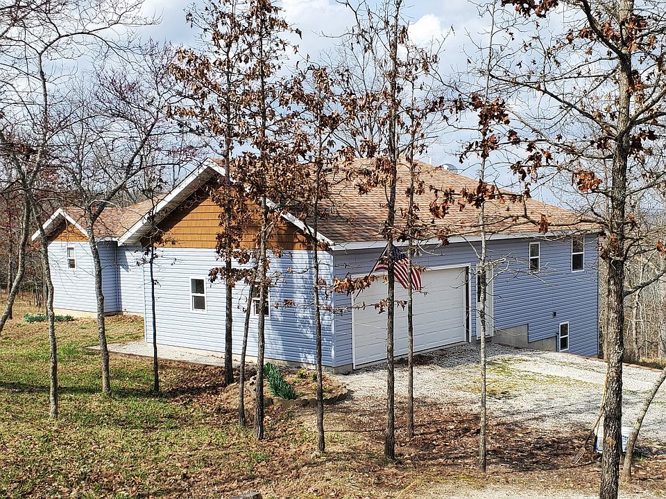 This beautiful 5-bedroom, 3-bathroom home sitting on 4 acres with a lake view of Bulls Shoals Lake is ready for new owners. This home has the master bedroom and 2 additional bedrooms upstairs. One of the bedrooms does not have a closet so it could also make a great office. Downstairs you will find another large living room and 2 more bedrooms so kids and guests can have all the fun they want while mom and dad relax upstairs after a fun day on the lake. Enjoy your morning coffee or tea on the screened-in porch while listening to the peaceful sounds of the country life. The property has a large outbuilding to store the toys for kids and adults. The home even has a John Deere room for a workshop, crafter's area or additional storage. Whether inside or outside, the spectacular countryside and seasonal lake views help showcase the natural beauty of the Ozarks. Adjoining 2.46 acre lot available for additional cost. Call today to schedule your showing while this home is still available.