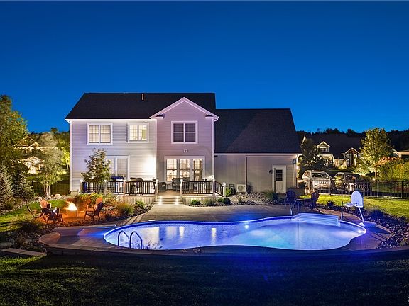 Welcome to 1031 Butters Farm in a very desirable neighborhood in Skaneateles. This exquisite custom built Colonial has an open floor plan, chef's kitchen with high end appliances, quartz counter tops, walk-in pantry, abundance of windows overlooking the beautiful landscaped yard, family room with gas fireplace, hardwoods, and nice sized study, mudroom, half bath and laundry room all on the first floor. The second level has the Primary bedroom with walk-in closet, ensuite bath with double vanity, soaking tub, and tiled shower, three additional ample sized bedrooms, full bath and possible fifth bedroom or could be used as a media room, workout room, or recreation room. The newly private landscaped and hardscape backyard is fully fenced in with in-ground pool, fire pit area, deck, and hot tub. The yard is resort like living. Full basement that could add more square feet to the home if needed. All walking distance to the schools, and village. This home will not disappoint and all in the award winning Skaneateles School district.