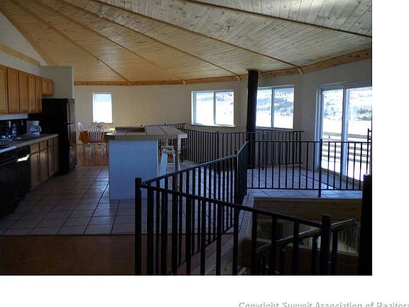 Knock your socks off views in every direction! Open floor plan with vaulted wood ceiling. Kitchen with breakfast bar, dining area, lots of cabinets. Spiral staircase to lower walk-out level which has wood burning fireplace and views from every window! Two lots fenced and cross-fenced. Perfect horse property. Solar electric system, well & septic.