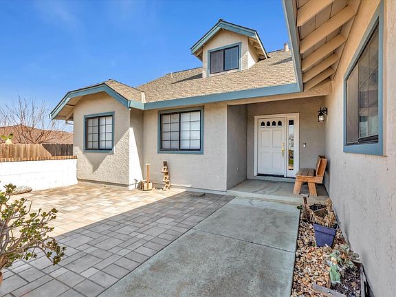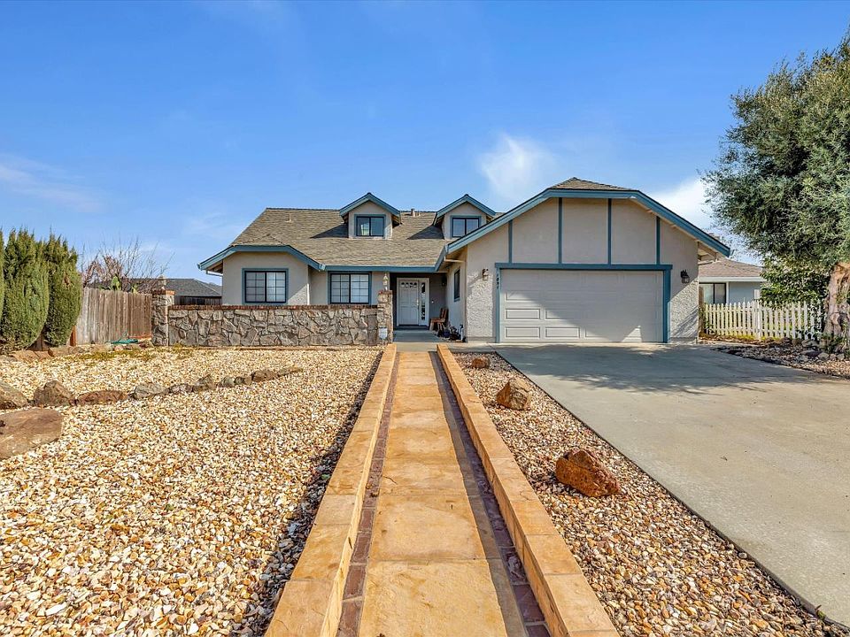 This beautiful 4-bedroom, 3-full bathroom home is move in ready. It features one of the largest lots in this neighborhood. The kitchen has granite counters and a gourmet gas range, pantry and breakfast nook that flows openly to the great room, with a stone & gas log fireplace. Three ground-floor bedrooms feature spacious closets. Tall ceilings give appeal to the grand primary bedroom, which includes sliding door access to the backyard. The primary bathroom features a separate vanity and large walk-in tile shower. The upstairs roomy loft is an area that can be used as a flex space for a office/den, additional living room, bedroom and/or game room. The backyard has a nice open area with some artificial turf for low maintenance. Plenty of room for gardening and outdoor BBQ. Enjoy & relax in the above ground spa that will stay with an accepted offer. This home is conveniently located across from Las Brisa's Park. Possibility to add an ADU, buyer to check with the county.
