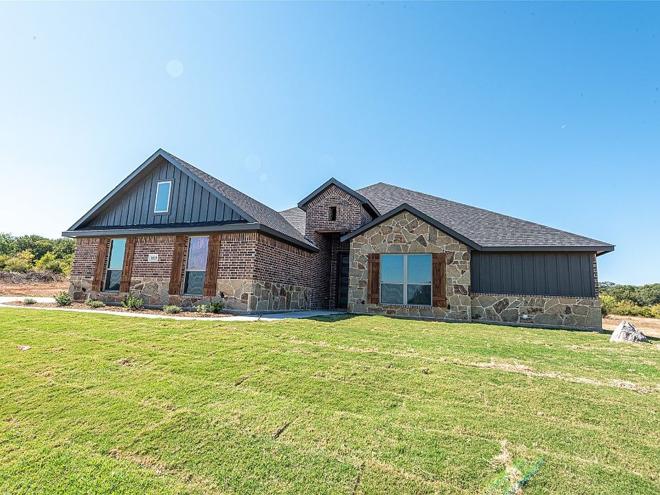 Beautiful, well-appointed DOC Home with 4 bedroom, 3 full baths AND a 5th felx space. Entry welcomes you with shiplap barrel ceiling into spacious open concept living area. Wood beams in living perfectly accent the stone wrap around fireplace. Large kitchen with tons of cabinet space as well as butler's pantry area! Front room can be used as an office or formal dining and features glass french doors. Bedrooms 3 and 4 share a large jack and jill bath. Wood Burning fireplace on the large back porch to enjoy those Texas fall evenings! Completion by end of October! BUILDER IS CONTRIBUTING $10,000 TO BUYER'S CLOSING COST, ASK FOR DETAILS!
