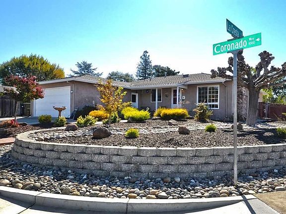 Fabulous house on corner lot. Enjoy living in this expanded and updated single story charmer.Great family home in move-in condition, w/open floor plan. Rich laminated flooring,warm interior colors,6-panel interior doors,framed dual pane windows w/honey comb blinds,high baseboards and crown molding in living area,ceiling fans. Remodeled, well equipped kitchen with Beadboard Cabinets, Granite counter tops, stainless steel appliances, recessed lighting, large breakfast bar w/pendant lights. Master bedroom w/adjoining bathroom w/walk-in closet, white cabinets,Granite counter tops, large walk-in shower and separate toilet room. Two more good sized bedrooms. hall bath w/shower over tub, white cabinets w/Granite counter tops.Lots of storage.Remodel,addition, roof done in 2005 w/permits.2017 solar panels (owned!). Low maintenance front and backyard w/stamp concrete patio area, side yard access, Automatic irrigation.