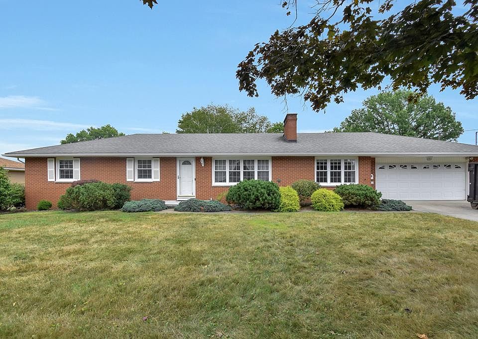 Don't miss out on this quality built brick ranch. Applianced kitchen adjacent to the formal dining, Beautiful living room with a woodburning fireplace plus a quaint family room with a gas fireplace. Spacious primary suite. 2.5 baths. Convenient 1st floor laundry. Enjoy the 18.9 x 16 three season room. Huge unfinished basement with so many possibilities. New furnace and central air 2016. Deep 2 car garage plus storage shed. Quick access to Rt 13 and I-71. Taxes listed are actual. At closing they will be prorated on a homestead.