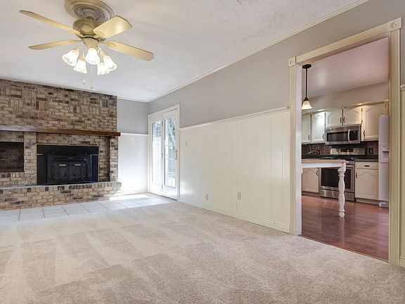 Fantastic family home that has been totally remodeled! The lg living room has new carpet, wood burning fireplace & lots of windows overlooking the big backyard. The kitchen/dining has updated stainless appliances w/gas stove, corian countertops, painted cabinets, new fixtures, laminate wood floors,lg dining area & pantry. Upstairs is a master suite w/ another bedroom attached, which would make a great office or nursery There are 2 more good sized bedrooms upstairs plus full bath & Jacuzzi tub. On the main level is the laundry room & a craft room. Downstairs is the second living space w/ wood burning fireplace, stained concrete floor & 1/2 bath. There is also a large storage room & new roof. Out back is a wonderful deck w/ a private backyard & oversized storage shed!