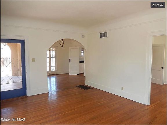 This charming 1920's Jefferson Park Bungalow offers the perfect blend of vintage character and modern updates. The main house spans 1581 sq. ft., with 2 BR/1 BA, and stunning wood flooring throughout. Enjoy original touches like coved ceilings and built-ins, complemented by modern amenities such as a washer/dryer, granite countertops, central heating and cooling, and double-pane windows. A cozy fireplace adds warmth and charm to the living space.At the rear of the property, you'll find a spacious 1076 sq. ft. casita with 1 BR/1 BA, beehive fireplace, mini splits, W/D, double-pane windows, and French doors leading out to a large, private courtyard--a perfect retreat. Located near Mountain Ave. bike path and the UofA, this home offers convenience, character, and charm all in one!