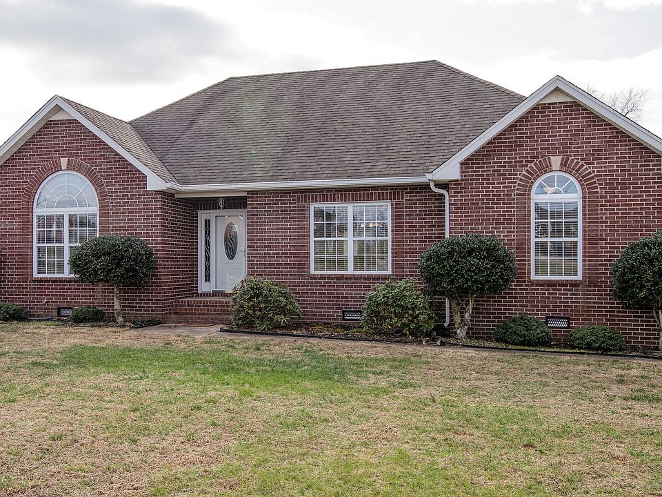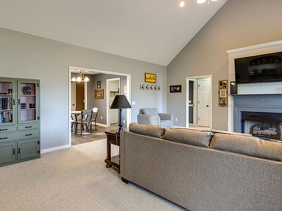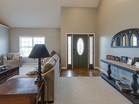 Country estate with 3 bedrooms on main level & large bonus room over the oversized garage. Open floor plan w/cathedral ceilings & a warm FP. Owners suite has cathedral ceilings w/ large window for lots of natural light, walk in closet, soaking tub & shower and double vanities. Garage has nice area for workshop or storage for lots of toys. Oversized 1 acre yard is open & backs up to the current farm w/lots of nature. House has been totally painted, new HDWD floors & fenced in area for your pet.