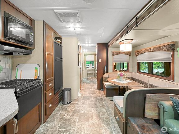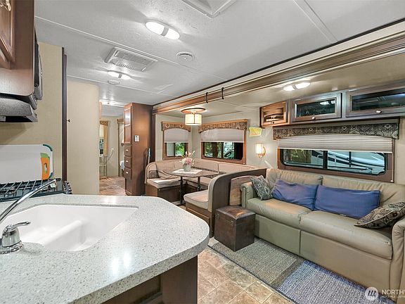 Escape to your private vacation retreat with this 2013 Dutchmen 314BH Coleman bunkhouse trailer on a great lot inside a gated 120-day-use community! This spacious 31' camper features two slideouts, a queen master bedroom, bunkhouse sleeping for the whole crew, and a private entry bathroom with tub and skylight. Enjoy a large U-shaped dinette, sofa bed, and full kitchen with 3-burner range, oven, microwave, and large fridge. The outdoor kitchen with sink, fridge, and grill hookup is perfect for entertaining. Community amenities include a year-round heated pool, clubhouse, and endless recreation nearby — fishing, skiing, hiking, and more. Sleeps up to 10!