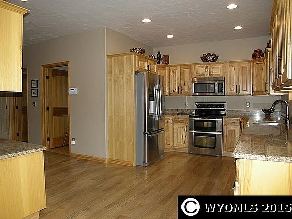 This Custom Built Home features amazing, unobstructed mountain views and backs up to open space with trails and a park. Stunning granite entryway, countertops, fireplace and bathroom floors. Fantastic Master Bedroom with a huge walk-in closet. Master bath includes a walk-in granite shower with separate jetted tub. Beautiful Hickory cabinets and floors in the kitchen with stainless steel appliances. Fully finished basement including a second master suite. Call Elias Bradach at 307-262-6175 to tour this Home.