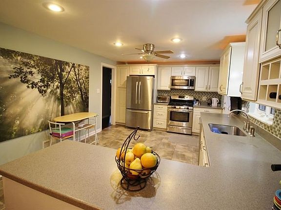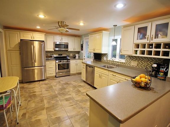 This Beautiful Home is larger than it looks and move in ready with a flexible floor plan and tons of storage. So much to enjoy here starting with the light and bright decor, the creamy dreamy custom kitchen with corian counters and stainless steel appliances, dining room with hardwood floors, Living room with fabulous stone and marble fireplace and hardwood floors, great updated baths and with two bedrooms and a bath on the main floor and the upper level there is tons of flexibility to accommodate your needs. The lower level is huge with gameroom, extra basement space, laundry plus storage. The basement entrance and extra space could be ideal for a home office or business. Off of the kitchen and dining room you will enjoy the 34 x 13 exposed aggregate patio with awning (in storage now) and great fenced in back yard which leads to the spacious detached garage and extra parking. Conveniently located to everything but yet private and secluded. The possibilities are endless here...