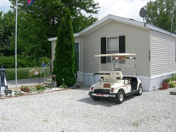 Hard to believe,yes you own your land and a 24'deeded dock and you can finance on this very nice mobile. Get on your boat and be on Lake Erie in a minute.Beach within walking distance. 3 bedroom and just about everything stays.Two storage sheds and a large patio to enjoy. Last home on street and sits beside stocked stream,nice grassy area. Boat is available for purchase also.