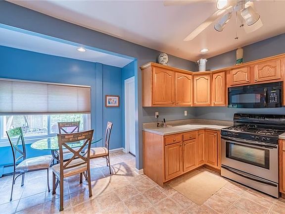 Lovely home in a location that's close to everything! You'll love preparing meals in the sunny and bright eat-in kitchen featuring ceramic tile floor, gorgeous wood cabinetry and stainless steel appliances. Lots of work space and storage space! Get peace of mind from replacement windows, roof (2010) and boiler (2010). Bonus shower in the basement! You'll be amazed by the room sizes in this home. Enter from the wide front porch featuring easy-care post and rails into the large 16x17 living room - a great size for entertaining. The dining room is also a spacious 13x13. There's definitely room for all your furniture! Upstairs there's a huge 16x17 master bedroom and two other spacious bedrooms, an updated bathroom, and plenty of closet space!