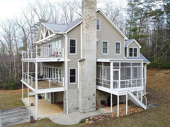 REDUCED PRICE! Beautiful 4 bedroom 3 1/2 bath home has a beautiful country side views from this immaculate 3 story home situated on 61 acres in Patrick County! Home has a little over 3400 square ft. of living area that includes 4 bedrooms and 3 1/2 baths with an elevator! Love to entertain? Main floor features a beautiful open kitchen with hardwood cabinets, tile flooring, granite counter tops and stainless appliances. Large living area with floor to ceiling rock fireplace. Master bedroom with 2 walk-in closets, master bath with jacuzzi tub, walk-in shower and double sinks. Also on the main floor, enjoy your morning coffee in the peacefulness of the outdoors on the large screened-in porch. Ride the elevator to the second floor where you will find another large living area, 3 bedrooms and 1 full bath. This house comes completely furnished with nice furniture.