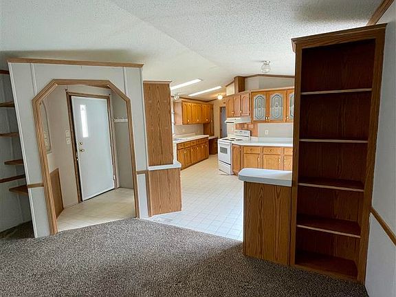 1994 Champion Home 16x80. Cannot be moved off the lot. This mobile home has two decks- one in the front and one in the back. Nicely sized master bedroom and bathroom with skylight. The kitchen has a sliding glass door that goes out to the back deck. Newer carpet in living room and bedrooms. No Washer and Dryer. Lot rent is $350 which includes water, sewer, lawn, garbage and snow removal of roads and driveway.