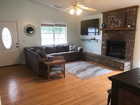 Cute move in ready 3bdrm 2bth Ranch Home with a 1 car garage in the heart of town convenient to shopping, restaurants, parks, & ballfields with no HOA. As you enter the home you notice the nice size family room and beautiful wood burning fireplace with a well equipped kitchen and plenty of cabinet space. The owner's suite is plenty big enough with the bedrooms having painted concrete floors to help keep energy cost down. The backyard has a horizontal plank property fence with a huge above ground pool to help stay cool during the summer.