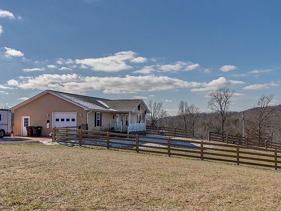 Privacy and convenience awaits you at this lovely ranch situated on over 7 acres.Driveway leads to the oversized 1-car garage w/large workshop area & finished 1/2 bath. Open porch overlookslarge newly fenced yard w/mountain views. Features include a spacious upgraded kitchen, wood floors, gas logfireplace w/stone surround & finished walk-out basement including a large additional built-in garage. Low Bedford County Taxes!