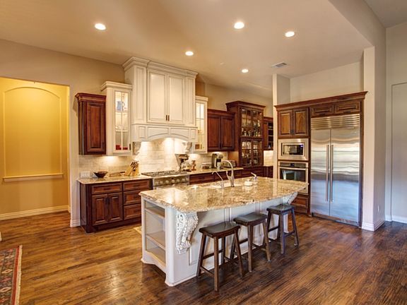 Entertain friends while you're cooking in the sumptuous kitchen! Commercial grade cooking/Sub Zero Frig-Exquisite granite-Dining formal or casual with a cracking fire in the living room floor to ceiling fireplace! Class A comfort & style is what this home exudes! Hardwood flooring throughout all main living areas - Media room for the ultimate experience of 3D movies and sports! All located on a choice wooded lot in sought after Estrella Crossing! This is a home to suit everyone's needs!