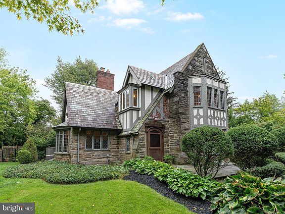 Discover the enchanting allure of this magnificent Tudor-style residence nestled in one of Rydal's most coveted neighborhoods. The stunning exterior landscaping draws you in, accented by elegant exterior lighting at night. Step inside to experience the captivating interior and private outdoor retreats that transport you to a world of unparalleled beauty. The elegant living room, adorned with a stone fireplace, rustic wooden beams, gracefully curved entryways, exposed stone walls, leaded glass stained windows, and a Juliette balcony overlooking the 2 story living room exudes a romantic and stately ambiance. This home seamlessly blends original charm with modern conveniences, creating an irresistible charm. The family room, boasting soaring vaulted ceilings, new gas fireplace, and newly installed French doors opening onto a stone patio, serves as the heart of the home. Majestic windows and built-ins grace the formal dining room, while the first-floor study, refinished in 2017 with floor-to-ceiling bookcases, French doors, and exposed stone walls, provide a serene workspace. The gourmet custom kitchen is a chef’s dream with newer double ovens, gleaming granite surfaces, and custom wooden cabinetry. This space is accompanied by a cozy butler's pantry/side sitting room, a laundry/mud room which was updated in 2021, and an updated full bathroom, completing the main floor's amenities. Upstairs, beautifully finished hardwood floors grace the space. The charming primary suite with a luxurious bathroom, including heated floors, connects to a second bedroom with a newly installed Murphy bed that can double as another bedroom, sitting room, or nursery, offering flexibility and convenience. Additionally, each of the generously sized third and fourth bedrooms enjoys its own private bathroom. The unfinished basement has been completely waterproofed with a water remediation system, perimeter drain, vapor barrier, and 2 sump pumps. An egress and glass block windows were also installed in 2016, with an updated radon system. Additional features of this home include a newly installed main HVAC system, a new high-efficiency furnace and copper pipes, new roofing on multiple sections of the home, and an updated electrical system with a generator switch and included generator, including the removal of all knob and tube electrical. All side and rear windows were replaced, and all interior windows were reglazed, both in 2016. Professionally landscaped and fenced-in grounds surround the property, featuring exquisite brick and flagstone patios that lead to a custom-built heated saltwater pool with a cascading waterfall. This home is a testament to extraordinary quality, old-world charm, and updated amenities, all set against a stunning backdrop that awaits your presence. You will fall in love with this timeless masterpiece today.