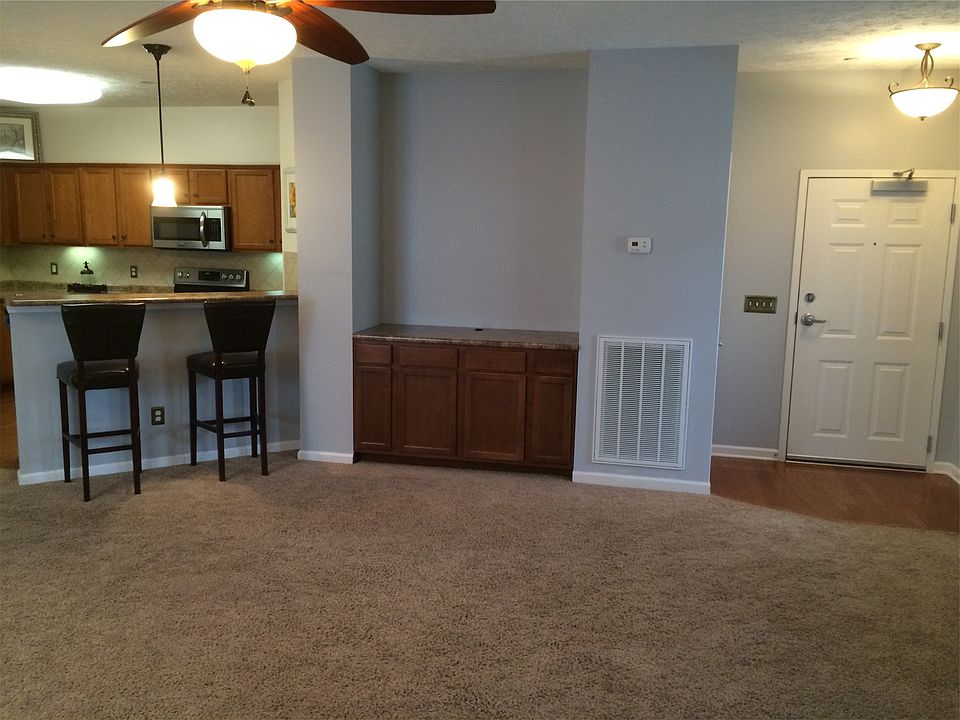 2 bedroom, 2 bath ground-level condominium with a two and a half car garage. Kitchen includes stainless steel appliances for refrigerator, stove, microwave, and dishwasher. Washer and dryer hook ups, but you will need to provide your own washer and dryer. Community includes access to fitness center, dog parks, walking trails, and pool. Conveniently located close to I-65, shops, and many corporate offices. 12 mo. lease w/ approved application. Please call our leasing office for more information.