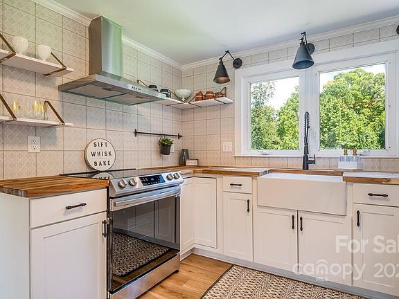 This cozy cottage style home on 1.26 acres shows like a model home. You'll love the kitchen; from the acacia butcher block countertops and apron farm sink to the new stainless appliances including Refrigerator, hood, range, and dishwasher. The open floorplan shows off the accent wall and beautiful flooring throughout. The full bathroom includes a free standing tub with rain showerhead & spray system and stunning tilework on the floor and surrounding the tub from floor to ceiling. Enjoy the big fenced backyard and keep your lake toys, bikes and mowers in your man cave/she shed. This home is conveniently located to Lake Norman State Park, Troutman, Mooresville, marinas, restaurants, shopping and more. Lake Norman State Park (about 2.5 miles away) is a 1,900+ acre park with activities including; hiking trails, biking trails, fishing pier, boating (public boat launch), canoe rentals, swim and sandy beach area with bathhouse, picnicking areas throughout and much more!