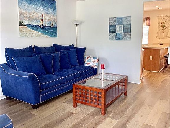 Fabulous 3BR/2.5 Bath, 2 story furnished end unit townhome in a quiet, wonderful gated community less than a mile to the beach. Large community pool and tons of parking! Master BR on 1st floor. New wood flooring installed in the living room and dining area. Laundry closet off master bath. Lots of storage! Screened in back porch with storage and extended patio outside for entertaining and grilling. Minutes to the shopping, dining, and the MB Airport.