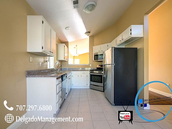 Glen Cove home available. Remodeled home comes with stainless steel appliances, granite counter tops, pergo flooring, wood burning fireplace, separate indoor laundry room, manicured lawn, private court location, high ceilings, backs up to open space and so much more. This beautiful home sits on a 5,512 square foot, located near Glen Cove Elementary School, Glen Cove Park, Walking Trails, minutes from Benicia State Park, Safeway Shopping Center, Restaurants, and so much more! Call now to set up your private showing. Pets are welcome! (breed, number of pets and weight restrictions apply.)