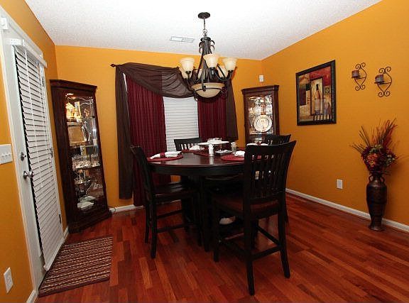 This is the home for entertaining!! Spacious & Open floor plan! Perfect home for that Super Bowl Party with kitchen counter seating, dining room and breakfast area open to the family room. Wood floors, corian counters, stainless appliances, and alarm system. Screened-in porch overlooking large yard that's perfect for a pool and a BBQ with friends. Built-in computer/kitchen desk in breakfast area.
