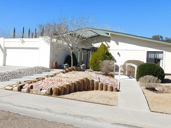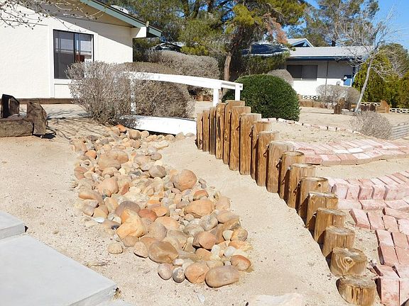 Xeriscape backyard ! New sod in front yard with Bridge over "creek".Trellis in protected entry leads to French dr w/sidelites.Inside is large formal living & dining rm w/view of the back patio.Kitchen features solid surface counters w/tile backsplash;dw,mw,cooktop replaced.Tin ceiling w/LED lites.Double french drs to patio;counter to kitchen.Pergo laminate continues thru builtin nook to family rm;gas insert in fireplace.Back to entry pass the laundry rm.Bedrms all on north wing:3 guest bdrms have fans.All finished ceilings thruout!Hallway lined w/cabinets.Guest bath remodeled '14 w/2 sinks & tiled tub/shower.Mstr suite has dualpane windows;recessed lites;builtin entertainment center;dr to patio.Mstr bath remodeled w/corner shower,corian counter,tiled floor;walkin closet.Backyd has block wall,RVaccess;shed,raised gardening,shed.Patio has access to 3 sides of house.Upgraded electrical w/subpanel in garage.Trane dualpac'07,eavemt cooler:separately ducted.Roof '09.R38 insulation blown in attic'14.extra lge garage