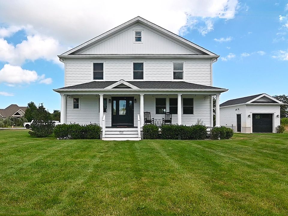 Nestled on over 1.2 acres, 1031 Seashore Road in Cape May is ideally situated adjacent to the Isaac Smith Vineyard, granting it panoramic views of the vineyard’s expansive fields and creating a serene, rural ambiance. The gentle breeze from the vineyard, combined with the vast views of the surrounding landscape, provides a sense of peace and quiet that is hard to find in more densely populated areas. The home’s strategic location provides the perfect blend of privacy and convenience, offering a tranquil retreat while still being just minutes away from Cape May's vibrant town center, beaches, and local amenities. Upon entering this two-story coastal residence, you are welcomed by a spacious foyer that includes a convenient half bath. To the right lies the dining room, while directly ahead is the great room, complete with a wood-burning fireplace. The gourmet kitchen flows effortlessly into both the great room and dining room, enhancing the appeal of the open floor plan. The sliding glass doors lead to a beautiful deck that overlooks the inground pool and firepit. The large lot surrounded by mature trees and natural landscaping provides privacy and ample space between neighboring properties. Adjacent to the home is a detached garage. The second floor comprises four spacious bedrooms, one of which includes an ensuite bathroom featuring a separate water closet and a custom-tiled stand-up shower. This bedroom, along with another, offers picturesque views of the expansive backyard. Additionally, the laundry room is conveniently situated on the second floor, while the remaining three bedrooms share a beautiful bathroom equipped with a tub and shower combination. Unwind and take in nature’s beauty while enjoying quiet evenings on the expansive deck or strolling through the lush grounds, this property offers an unmatched sense of tranquility, all within a short distance of Cape May’s charming attractions. Whether you're seeking a full-time residence or a seasonal retreat, this property offers a unique opportunity to enjoy the best of both worlds.
