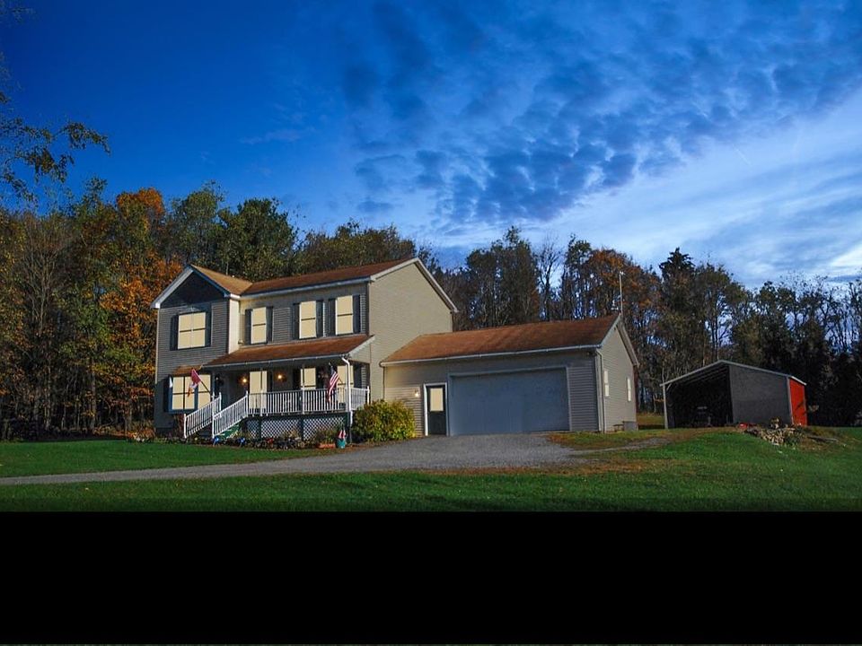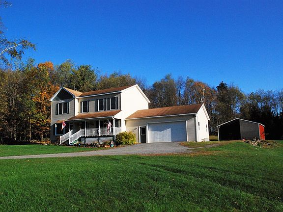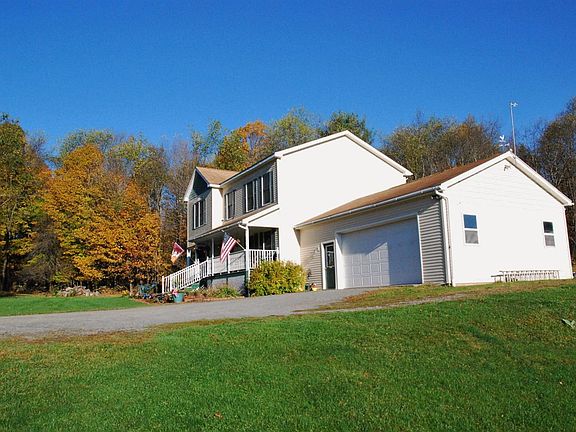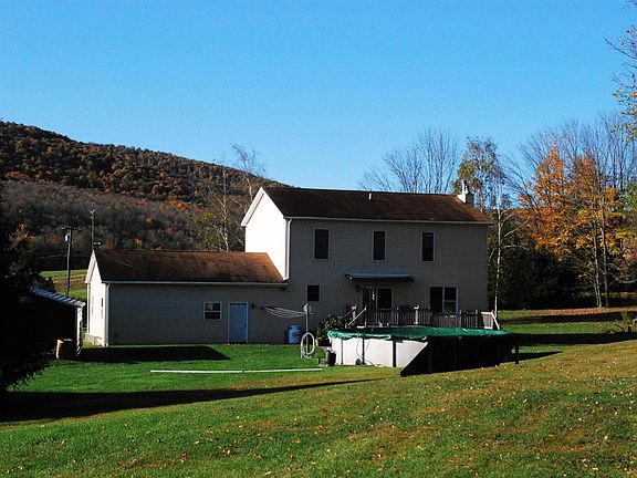 This is a beautiful setting for a country home! Surrounded by hills, forest, wildlife and farmland but only 10 miles from the Southside Mall in Oneonta you get the best of both worlds. Privacy, quiet road, lots of gardening space and over 16 acres of peaceful life. All this and close to shopping too. This house built in 2000 features 3 large bedrooms, 2 and a half bathrooms, an over sized attached 2 car garage, rear deck with awning, above ground heated pool, central vacuum system, master suite (with tub and separate shower!), baseboard hot water heat, propane cooking stove, wood stove, cable Internet/TV, a full walkout basement and a chicken coop! It all looks better in person so come see this soon!