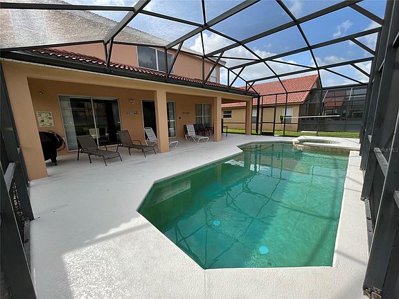 This beautiful fully furnished Mediterranean villa, occupying a prime location near Disney, is available for rent starting September 1st, 2023. House features over 3000 square feet of living space, with 5 bedrooms, 4 full bathrooms, and a large, enclosed lanai with a sparkling pool and jacuzzi. The 3 junior master bedrooms have their own ensuite master bathroom and the 2 two twin bedrooms have a shared bathroom. The property can be rented with flexible rental terms, but a minimum 2-month lease is preferred. It can be the perfect rental option for snowbirds, individuals in need of a nice in-between place to live, or corporations in need of temporary housing near the Disney area. The house is live-in ready, all you need to do is bring your clothes. Also included in the rent are internet, cable, pool maintenance, lawn maintenance and trash collection from your driveway. The Solana resort offers a nice resort-style living experience, with a beautiful community pool with a jacuzzi and tiki bar, mini golf, billiard table, ping pong tables, a nicely equipped gym, a volleyball sand court, mini golf, and a park for the little ones.