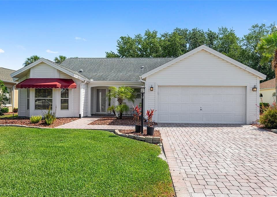 LOCATION, LOCATION! NO BOND! Beautifully UPDATED 3/2 CYPRESS CUSTOM DESIGNER that sits on HACIENDA GOLF course with no golf cart path behind! As you approach the home you will notice the paver driveway and walkway with the covered front porch area! Upon entering the home, the Foyer has a coat closet. The CUSTOM kitchen features Stainless Steel Appliances, Subway Tile Backsplash, a Breakfast Bar, Updated lighting, Light Cabinets, GRANITE countertops, Crown Molding, an Eat-In area with a Bay Window, and Tile on the Diagonal, and is Open to the living and dining room! The living room features CROWN MOLDING, SOLAR TUBE, TILE on the diagonal, and updated lighting. Just off of the living room is a small foyer leading to the Master Bedroom featuring tile flooring, Crown Molding, a double closet, and a view of the Golf Course. The Master Bathroom features double sinks, tile floors, Granite Countertops, a Custom Tiled WALL & Walk-in Shower with a Glass Door, and a linen closet. Both guest bedrooms are on the opposite side of the home. The 2nd bedroom features a walk-in closet, Crown Molding, and tile floors, and is a convent located next to the guest bathroom. The Updated guest bathroom features a New Vanity, Vessel Sink, Granite Counters, a Glass Door Entry to the Tiled Shower/Tub, and a large linen closet in the hallway. The 3rd bedroom features Hardwood floors, a built-in closet, Crown Molding, and French Doors Leading to the Florida room. The FLORIDA ROOM has Hardwood Flooring and crown Molding and is the perfect room for relaxing with a good book or TV or watching the action on the Double Fairway of The Hacienda Hills Championship Golf Course. The Enclosed Lanai features tile floors and overlooks the Golf Course. Outside, you will notice the Brick Paver Patio on both sides of the home. The above-ground Hot Tub will stay and be sold as-is. Other Features include: Roof (2014), HVAC (2011), and Inside Landry! Located between Spanish Springs and Lake Sumter Squares! You will enjoy the Cordoba Recreation Center, which offers a resort-style pool, pickleball, a corn toss, a pavilion, and a walking path. Call me today for your private showing!!