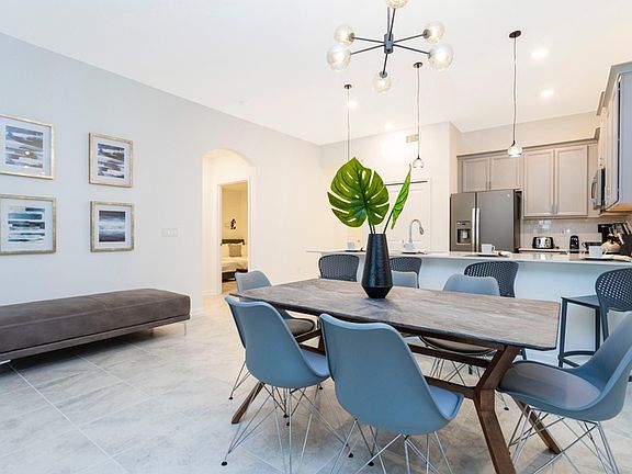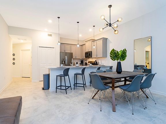Welcome Home! Enjoy the ultimate hassle-free resort lifestyle in this beautifully furnished 2-bedroom, 2-bath, 1-car garage townhome features high ceilings, an open-concept layout, and a modern kitchen with stainless steel appliances. The spacious living area opens to a screened-in porch, perfect for unwinding after a long day. This gated community in Champions Gate offer access to top-tier amenities, including pools, tennis courts, a fitness center, clubhouse, and playground. Act now! and schedule a showing before it's gone. All applicants are required to do a credit and background check. Renters insurance is required.