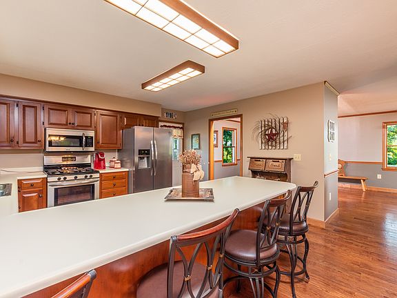 SOLID brick ranch home perched on a hilltop with farmland views! Popular Riverheads School district. Solid oak hardwoods throughout! Kitchen features stainless steel appliances. New metal roof! 3 brs, 3 baths, 2 garage car, 16x36 in ground saltwater pool too!! Nice private 1 acre lot, nestled in huge oaks! Semi open floor plan with fireplace, nice family room addition with cathedral ceilings!
