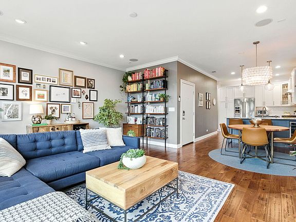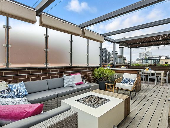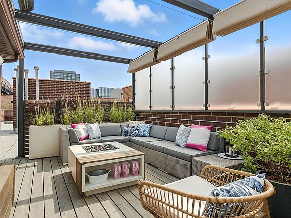 Experience penthouse living at its finest with this rare opportunity to own a designer home featuring *** BEAUTIFULLY BUILT-OUT PRIVATE ROOF DECK***in the heart of the West Loop. Welcome to a completely gut-rehabbed stunner where no detail has been overlooked. This 2-bedroom, 2-bathroom, 1,500 sq. ft. home offers a perfect blend of sophisticated design and modern comfort, located in one of the city's most desirable neighborhoods. The open-concept living and dining area flows seamlessly to a private balcony, ideal for enjoying your morning coffee or grilling while taking in stunning skyline views. The home features gorgeous wide-plank hardwood floors, crown molding, and dramatic floor-to-ceiling windows. The designer kitchen is a showpiece, boasting dolomite countertops, stainless steel appliances, a wine fridge, and a large breakfast bar perfect for entertaining guests. The sun-filled primary suite offers spacious closets and a luxurious, spa-like ensuite bathroom. This bathroom features dual vanities, Restoration Hardware fixtures, a jacuzzi tub, and a steam shower equipped with jetted sprays and a rain showerhead. One of the standout features of this home is the incredible, professionally designed private rooftop deck by Reveal Design. This amazing space is fully equipped for year-round enjoyment, featuring a steel pergola with adjustable shades, custom built-in seating and storage, a gas-plumbed fire pit, commercial-grade outdoor heaters, a custom bar, smartphone-controlled lighting, hardwired outdoor speakers, and professional landscaping. Additional highlights include built-in surround sound with in-ceiling speakers, a Nest thermostat, and garage parking. The home is located in the highly-rated Skinner School District, placing you within walking distance to everything the West Loop has to offer - restaurants, shops, transit, parks, and more!