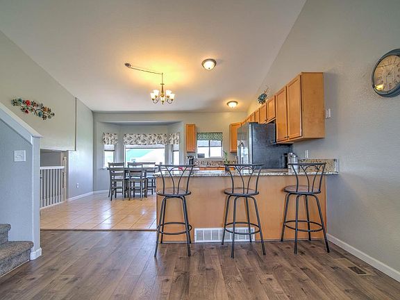 Beautiful upgraded home on corner lot w/finished garden level basement in Colony Pointe. This great floorplan offers lots of living space and includes a vaulted living room opening to a sunny kitchen with breakfast bar, granite counters, abundant wood cabinets and all SS appliances included! The huge family room offers access to the back patio, ideal space for summer BBQs or entertaining friends. The upper level features updated flooring plus 3 bedrooms including a master with a private entrance to the full bath plus its own balcony - perfect for morning coffee! The finished garden level adds more living space w/ an additional large bedroom plus a full bath & storage. Newer roof & hot water heater. Terrific spacious backyard with newer professional landscaping, extended patio with pergola, swingset & privacy fence. Great neighborhood with park, lake and walking trail! Easy highway access for commutes into Greeley, Loveland, Ft Collins or Denver
