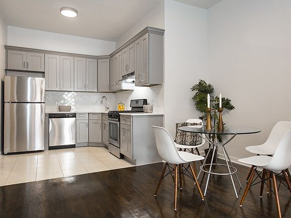 This brand-new, fully-renovated 3 bed/2 bath unit just off the waterfront in Hoboken will exceed your expectations with stunning updated finishes, newly finished hardwood floors, and an in-unit washer + dryer. You're greeted by the kitchen as you enter the unit, featuring a full-suite of stainless steel appliances including a dishwasher and gas range + hood. The kitchen stuns with slate grey custom cabinetry, a polished backsplash, and white Caesarstone Quartz countertops. Venture to a spacious dining room that opens up to the living room, featuring a bedroom with a closet for added versatility of the space. Toward the rear of the unit, you'll find a full-bath adjacent to the first bedroom. The bedroom comes fitted with convenient wall shelving space and a spacious closet. The impressive master bedroom features a custom walk-thru closet that opens up to an en-suite bathroom with gorgeous finishes, sleek tiling, and new light fixtures. Find an ideal living experience in Hoboken with plenty of entertainment, dining options, and attractions in the heart of a vibrant metro area. Visit delicious restaurants like Elysian Café and Amanda's Restaurant or enjoy a sweet treat at the notable Carlo's Bake Shop. You'll have convenient access to Maxwell Place Park for gorgeous greenery and waterfront views on the Hudson River."