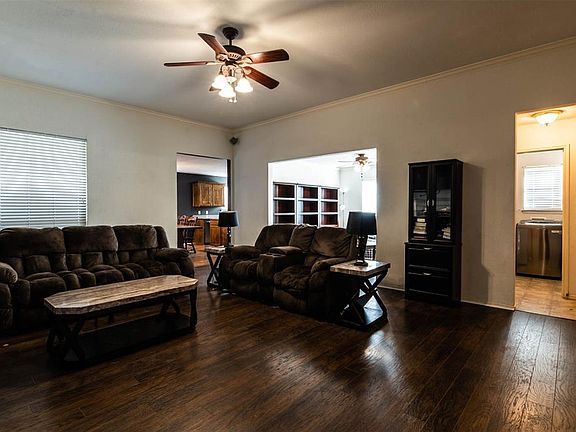 This well kept home boasts 4 bedrooms and 2 full bathrooms. The kitchen features island and stainless steel appliances. Great location off John Jones near movie theater and grocery stores. Home won't last long. No HOA. Refrigerator, washer and dryer, to convey. New AC installed in 2019.