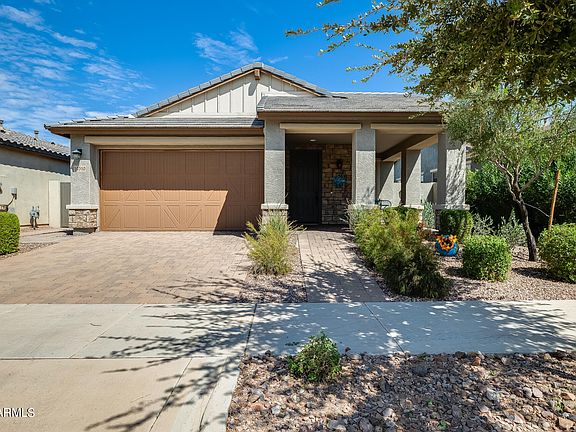 Beautiful 2 bedroom 2 bathroom home with a den in the Encore at Eastmark Active Adult Community! Open floor plan with tile floors throughout, with the exception of the bedrooms. Your gourmet kitchen features stainless steel appliances, a kitchen island, and walk-in pantry. The primary room features an en suite bath with dual sinks, a walk-in shower and a large walk-in closet. The laundry room includes shelf space and offers plenty of room. The large back patio and back yard is perfect for BBQ's, entertaining or just enjoying the outdoors. Relax in your sparkling pool or on the spacious open and grassy areas. Enjoy your own backyard oasis or take advantage of the community amenities which includes a heated pool and spa, workout room, tennis and pickleball, media center, walking and bike paths as well as a café! You won't want to miss out on this amazing home and all that the community has to offer!