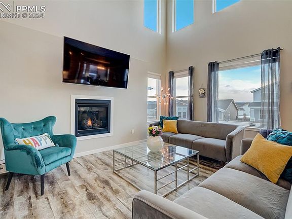 Come see this fantastic 2-story home in Cordera conveniently located in a cul de sac! This open concept home invites you into a spacious two story family room with soaring windows, 18' ceilings, a gas fireplace looking out into the beautiful back yard! The kitchen has been updated with underlaid farmhouse sink an open concept with oversized Island and brand new Tile backsplash. A huge pantry and under cabinet lighting allow this kitchen to feel high end! There is a Large dining area with bright windows and added butlers pantry attached. The main area has a front of the house office and a three car tandem garage with mudroom and half bath. The outdoor living area is simply breathtaking! Flat lot in an amazing community with Hot tub included and oversized patio. Upstairs has a huge primary bedroom with on-suite bathroom, large free standing walk-in shower with upgraded tile, double vanity and a large walk-in closet. Three more spacious bathrooms and a full sized bathroom are upstairs as well. No more lugging laundry up and down the stairs as the spacious laundry room is right next to all of bedrooms. This home features a full finished basement with 9 ft ceilings. Including one large bedroom an another full bath. There is a large unfinished craft room area as well. Lots of living space in basement as well. All bedrooms include custom wood closets, brand new carpet throughout and tons of natural light! The Pikes Peak Views from the master bedroom will start anodes day off on the right foot! Hurry and come see this beauty before its gone!