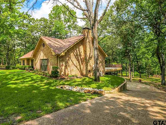Beautiful family home in lake community minutes from City of Tyler. This home offers lake access on your property as well as boat ramp around the bend. This home has been Home for this family since 1980 and it is time for a new family to make it their special place to make memories. There is a half kitchen down stairs with large game room/den and has french doors that open to the large back yard. Main living area has brick wood burning fireplace and gorgeous bamboo flooring and opens to a wooden deck overlooking yard and view of lake. This home is perfect for entertainment as there is 2 circle driveways for parking. In the back yard it has insulated play house for the kiddos that will stay with sale of home.
