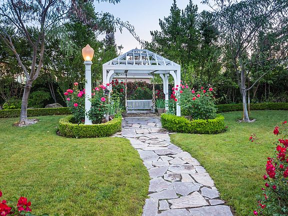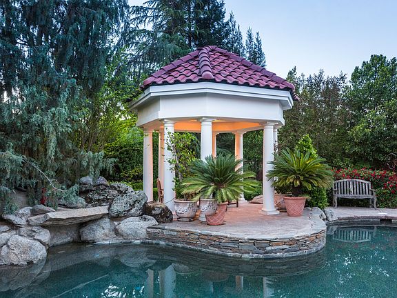 Tucked away in gated Saint Andrews Green on THE PREMIER STREET, Archie Ave. across the street from Fort Washington Country Club, this home is one in a million. 4 spacious bedrooms, luxurious amenities, and a backyard wonderland set this home apart. Landscaped to perfection, you will admire the homes curb appeal in the front and fall in love with the impressive garden in back. on an almost 18,000 sq. ft lot enjoy mature trees, evening breeze, East facing backyard, oversized patio, Pebble-tech, tahoe blue, self cleaning pool, natural stone waterfall with a lighted/fanned pavilion that sits at waters edge, this home is an entertainers dream. A gazebo swing flanked by roses tops this admirable yard off. Elegant Travertine flooring with marble edging throughout the home highlighted by crown molding, wainscoting, and corbels. Extra storage is hidden everywhere. Stunning great room with a wall of oversized windows allowing for maximum sunlight throughout the home. Stunning white raised hearth, French carved fireplace, and soaring mirror. The kitchen is updated with granite throughout, a divided, fireclay farmhouse sink, Rohl designer faucet/filtration, onyx/marble/stone backsplash, Wolf cooktop under stone vent hood, and Bosch dbl. ovens and dishwasher. Natural light floods the kitchen all day through dramatic skylight over the island. The dining area & sink overlook the stunning, eastfacing garden, pavilion and large pool. AND, a 9ft long, extensive pantry with shelves on 3 sides is a delightful surprise! Large Office with built ins, 2 marble fireplaces, one bedroom is secluded from the others. 15.5' floor space game room is spacious enough for all of your fun with built ins for extra storage. All bathrooms have high end features and are beautifully updated. The large owners suite has a sitting area with views of the garden, carved raised hearth, fireplace, 2 large walk in closets, Master bathroom is luxurious with floor medallion and wainscoting Travertine walls, including the sides of the jetted tub. An inset onyx/marble band surrounds the entire room, separate marble counters with inset sinks and designer faucets. Spa shower, 4 body jets, hand spray and rain shower overhead completes it all. 4 car garage, with workstation, cabinets lining rear. 10 - 18' ceilings throughout the home, 2 air conditioners, this home has it all!